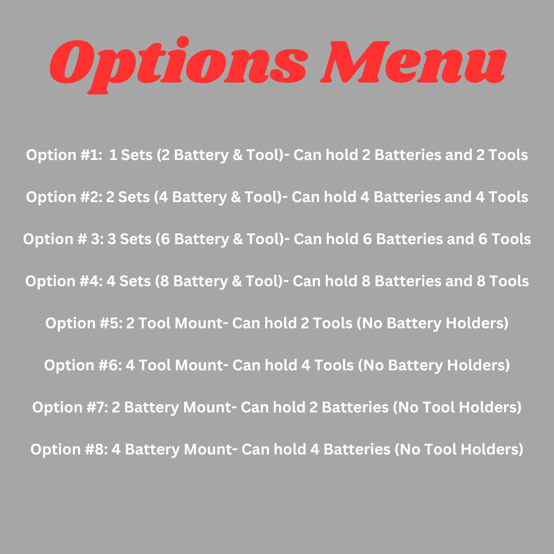 4 Sets (8 Battery & Tool)- Can hold 8 Batteries and 8 Tools